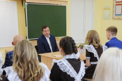 После завершения торжественной линейки Алексей Островский провел урок для учащихся 11-х классов. В ходе неформального общения старшеклассникам была предоставлена возможность задать главе региона любые интересующие их вопросы.
