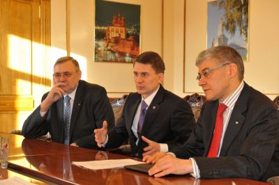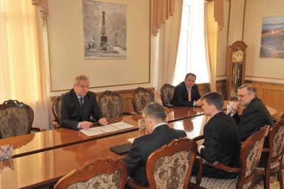 На рабочей встрече с Губернатором Сергеем Антуфьевым руководитель Среднерусского банка Сбербанка России Юрий Исмагилов представил главе региона нового управляющего Смоленским отделением Виктора Аршинова.
