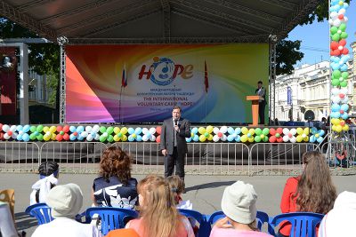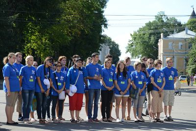 Губернатор Алексей Островский принял участие в торжественной церемонии открытия V Международного волонтерского лагеря «Надежда», которая прошла на главной площади областного центра.