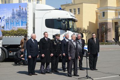 В торжественном митинге, посвященном отправке автомашин с братской помощью народу Крыма от Смоленщины, принял участие заместитель Губернатора – руководитель Аппарата администрации Смоленской области Лев Платонов.