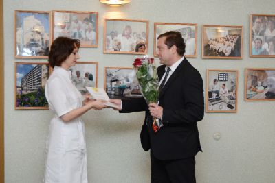 Сегодня во время визита в учреждение Губернатор Алексей Островский вручил награды пяти представителям медицинской профессии. Валентина Александровна Иванова (медицинская сестра-анестезист отделения анестезиологии-реанимации), Татьяна Петровна Руссиянова (врач-гастроэнтеролог гастроэнтерологического отделения), Александр Леонидович Савченков (заведующий детским хирургическим отделением) удостоены нагрудного знака «Отличник здравоохранения».