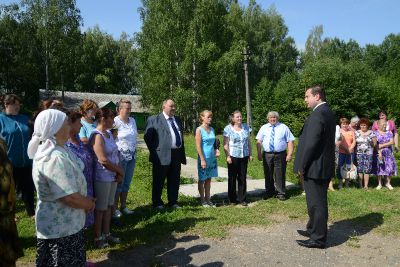 Алексей Островский совершил рабочую поездку в Никольское сельское поселение Сычевского района, в котором на сегодняшний день проживает 361 человек. Рабочий визит Губернатора начался со встречи с населением Никольского.