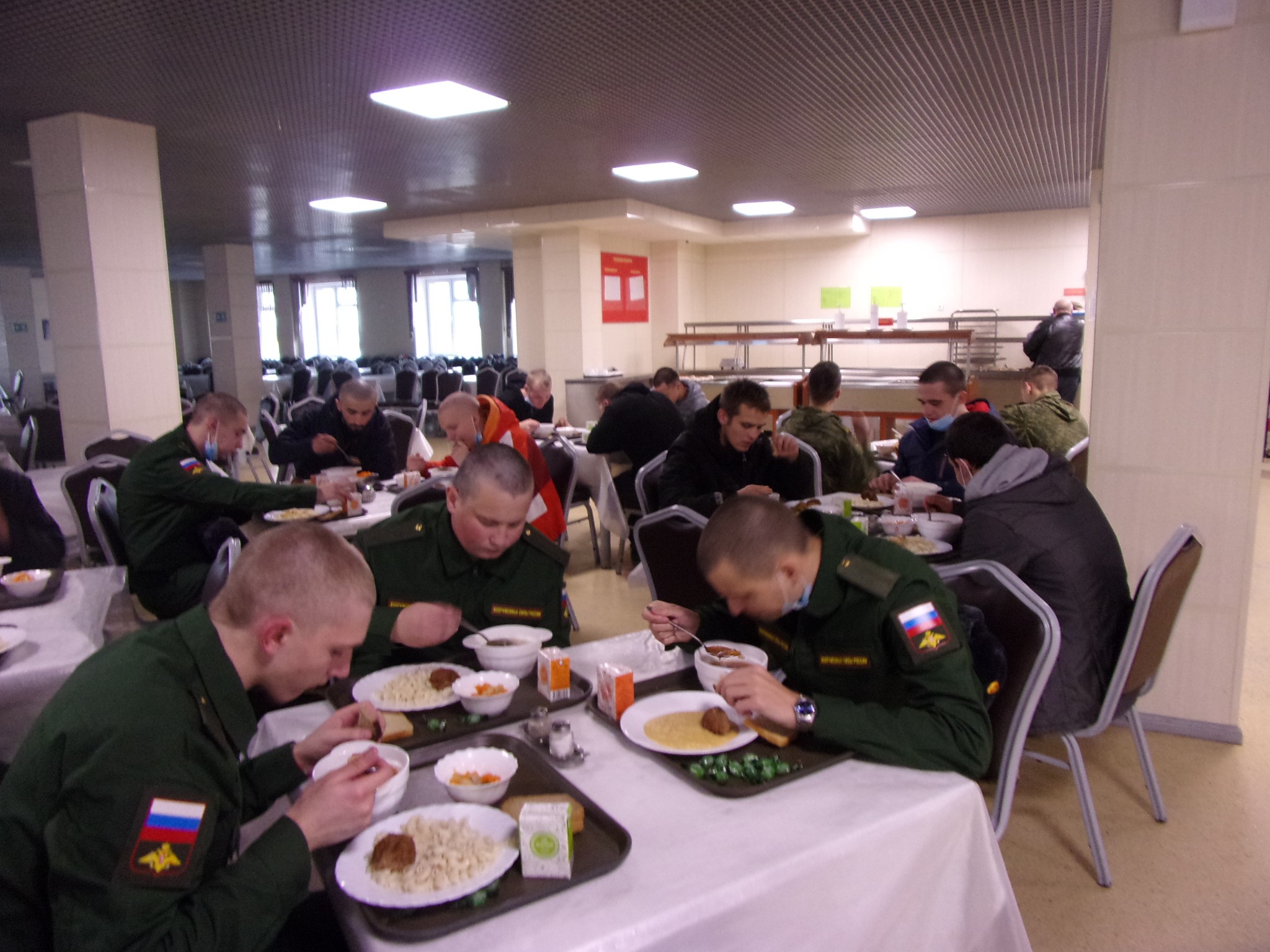 «Кормят в столовых воинских частей хорошо, – успокаивает военный комиссар. – Есть выбор как первых блюд, так и вторых. Питание в воинских частях организовано с привлечением аутсортинговых компаний».