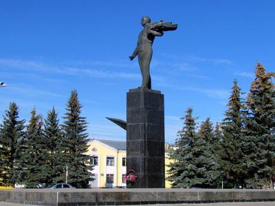 (Памятник Ю.А.Гагарину на Красной площади города)