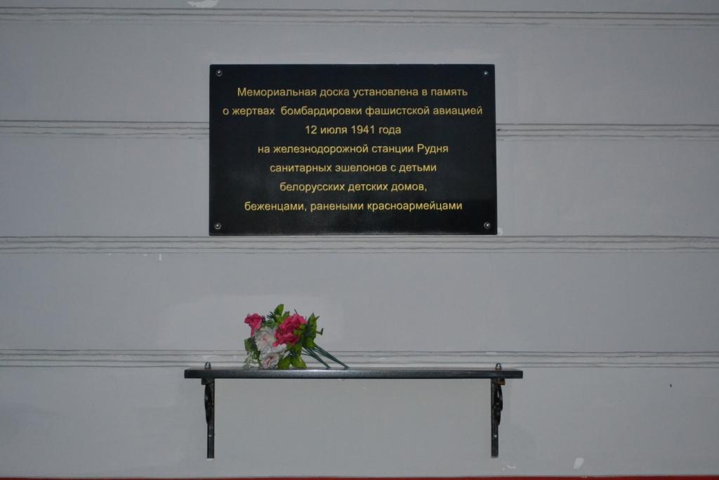 На здании железнодорожного вокзала г. Рудни была установлена мемориальная доска в память о жертвах бомбардировки фашистской авиацией 12 июля 1941 г. на ж/д станции г. Рудня санитарных эшелонов с детьми белорусских детских домов, беженцами, ранеными красноармейцами (2014 г.);