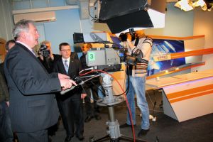 Governor Sergey Antufiev paid a visit to the presentation of the new digital equipment at the TV studio of the National Broadcasting Company ‘Smolensk’. The modern technical equipment allows putting material on the air quickly, and that is the first step to digital broadcasting in our region.