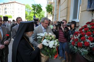 Bishop Panteleimon of Smolensk and Vyazma has performed the Divine Service in the Cathedral Church of the Holy Dormition. After the Divine Service a traditional religious procession together with the major orders, Smolensk church people, cadets and students went to the street named after Cyril and Methodius. Governor Sergey Antufiev together with the Bishop Panteleimon of Smolensk and Vyazma, the Chairman of the Regional Duma Anatoly Mishnev and the Chief Federal Inspector of Smolensk region Vladimir Slepnev put flowers to the bas-relief of Ss Cyril and Methodius Equal-to-the-Apostle, mounted on one of the houses.