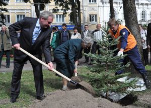 The Governor of the region has congratulated all of with professional holiday and together with its veterans took part in planting of twenty blue fir trees near the entrance to the Park of the city. The new alley is made in honor of the International year of forests announced by United Nations General Assembly.