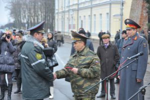 After tacticaltraining exercises Ministers of MOI of Russia and Belarus laid flowers to eternal flame and after that awarded the best representatives of MOI of the Russian Federation and the Rebublic of Belarus.