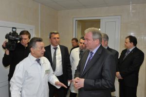 Sergey Antufiev visited regional clinical hospital of Smolensk and became familiar with fulfillment of repair activities conducting in the scope of arrangements of regional program of Modernization of public health for 2011-2012. Governor inspected newoperating rooms of therapeutically body accompanied by head doctor Evgeniy Kamanin.