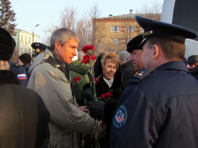 Fellow-countrymen of Jury Gagarin met «astral group of visitors» on the border of Smolensk and Moscow regions in the lead of astronauts of the first detachment, twice Heroes of the Soviet Union Aleksey Leonov and Victor Gorbatko. Heroes of the Soviet Union and Russia Vladimir Dzhanibekov, Michail Kornienko, representatives of the first space family Alexander Volkov and Sergey Volkov, Sergey Krikalyov - head of cosmonaut training center, Jury Lonchakov - space detachment commander arrived to the motherland of the first spaceman. Group of young officers among them Alexander Samokutyaev – the last cosmonaut and project group «Mars-500» were also invited as guests.