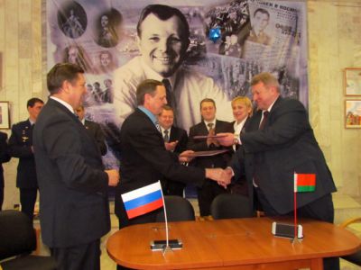 In the lobby of center «Komsomlets» were placed numerous exhibitions. Before the beginning of celebrations heads of the Belorussian city Orsha and Gagarin city signed an agreement about economic and cultural collaboration.
