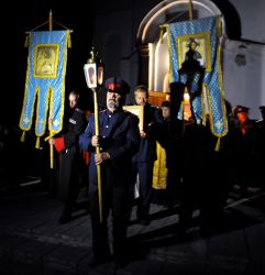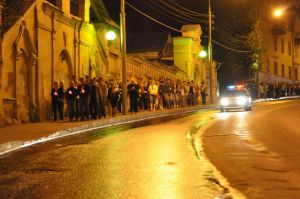 In the night from the 21-th to the 22-th of June in hero-city Smolensk took place action «Candle of Remembrance». Divine Liturgy was celebrated in Uspensky cathedral by bishop of Smolensk and Vyazma Panteleimon. Then representatives of Administration of Smolensk region and youth organizations, natives of Smolensk and guests of our city went with sacred procession through streets of city to the Dnieper. People carried flowers and candles in their hands in remembrance about killed soldiers. Raft with lights was launched to the great Slavic river after requiem.