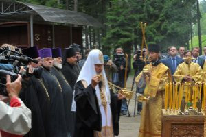 The Holiest Patriarch Kirill, Governor Alexey Ostrovskiy and others representatives of regional authority and the public, guests of Smolensk region visited memorial complex «Katyn'» after Divine Liturgy in memorial church.