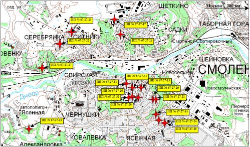 - - Smolensk, on the crossing of the streets Rylenkova and prospect Stroiteley (near place of construction of child eco biological center «Smolensky zoopark»);