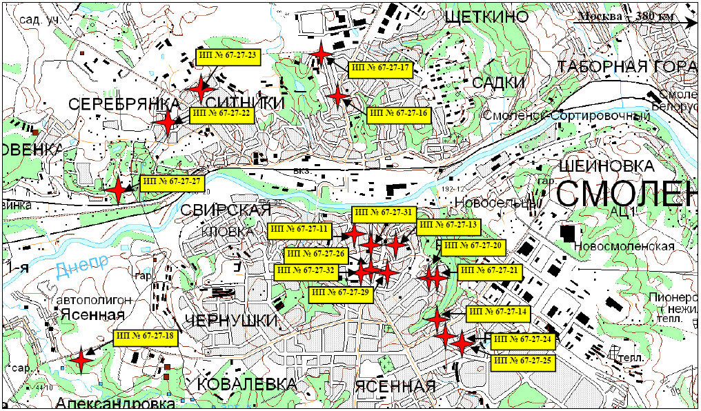 - - Smolensk, on the crossing of the streets Rylenkova and prospect Stroiteley (near place of construction of child eco biological center «Smolensky zoopark»);