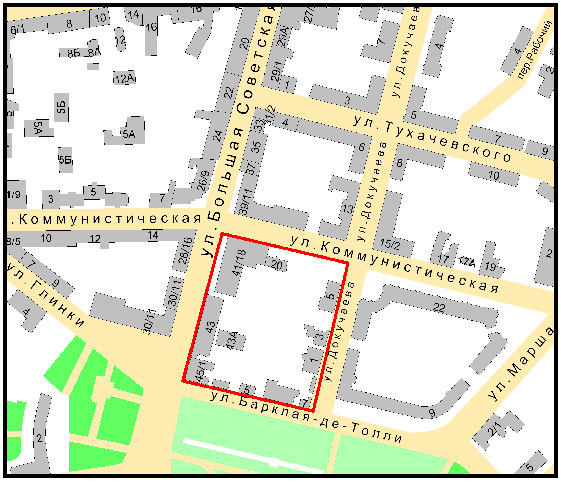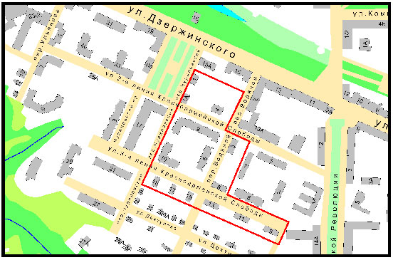 - - adjacent motorways of the streets Dzerzhinskogo and Glinki;