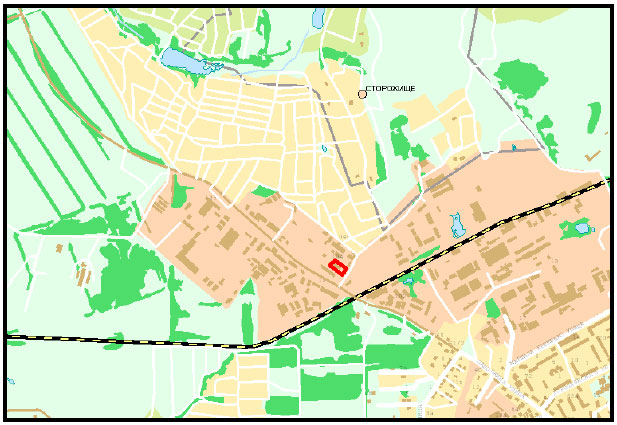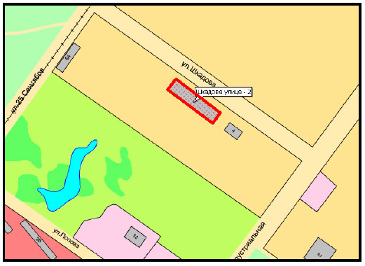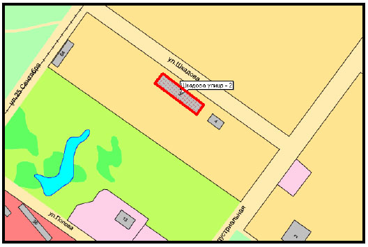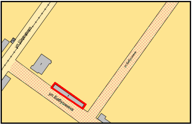 - - two traffic lanes asphalt motorway is 50 m building (ul.Shkadova, ul. Industrialnaya);