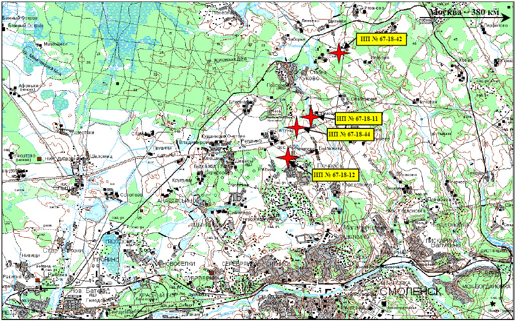- -Smolensk region, Smolensk district, Stabenskoe, to the north-east of Zhukovo village -2400 m away;
