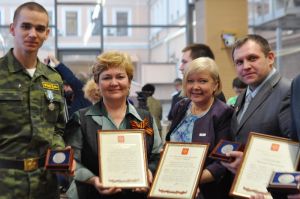 After that, there was a ceremony of awarding commemorative medals "70 Years of Victory in the Great Patriotic War of 1941-1945". The Heads of the Public Chamber of the Central Federal District - Chairman of the Public Chamber Board of the Central Federal District Nikita Chaplin and Hero of the Soviet Union and Hero of Russia cosmonaut Sergei Krikalev - awarded the medal to the Smolensk Regional Center of patriotic education and pre-conscription training of the youth "Dolg".