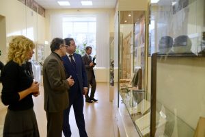Before the start of the meeting, the Head of the region visited the Museum of the History of Education in Smolensk region, created at the Institute. The museum exhibition includes 16 exposition sections and presents the main stages of development of the region's education, from the tenth century to the present. The museum has unique documents and objects, as well as their replicas made by professional artists, teachers, and students.