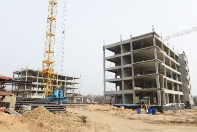 So far concreting of the fifth floor ceilings in the north and south parts of the building has been completed, the structural elements of the sixth floor are being installed, engineering and technological utilities are being connected, earth, welding and concrete works are being done at the site. Also, a new central heating unit has been constructed, and now it is being fitted and prepared for launching.
