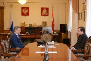 The Head of the region Alexey Ostrovskiy held a working meeting with the Chairman of the election commission of Smolensk region, Vladimir Sovarenko, during which he suggested that he become a candidate for the post of the Head of the city of Smolensk.