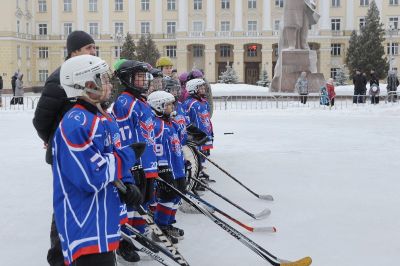In the central square of Smolensk there was an opening ceremony of the main ice arena of the region. On this occasion, young figure skaters and hockey players gave a performance.
