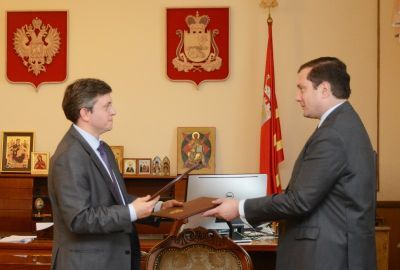 Opening the meeting, Governor Alexey Ostrovskiy noted: "Based on the results of the evaluation of the Strategic Initiatives Agency for 2017, Smolensk region is among the TOP-5 Russian regions to support small and medium-sized businesses. This is not accidental since the Administration of the region pays much attention to the development of this promising and growing segment of the economy. We will be happy if your bank financially supports different business projects in the field of entrepreneurship. In addition, we were the first in the Central Federal District to receive the support of the Government in terms of creating a territory for advanced socio-economic development (TASED) in the mono city of Dorogobuzh. So far, a number of agreements have been signed on implementing large-scale investment projects in the framework of TASED. Also, active work is being carried out to attract residents to the "Phoenix" and "Safonovo" industrial parks, which are under construction.