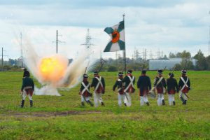 After finishing of solemn ceremony of reconstructed monument opening took place historical reenactment of episode of battles near by Krasny during the Patriotic War 1812 it was organized by forces of military and historical clubs of Russia and Belorussia.
