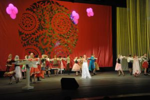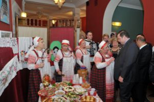 In the lobby of the dramatic theater was an exhibition of arts and crafts of diasporas. Guests feast tasted national dishes.