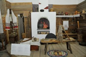 The exposition of “Smolensk flax” is now placed on the two floors of the Nikolskiy gate. An interior of a peasant’s izba (log hut), tools used to process and fabricate the linen, houseware, traditional Russian homespun items such as inwrought table-cloths, towels, icon cover cloths, drapes, gored bias-cut sarafan (folk dress), shirts, ponevas (traditional skirts), skirts, aprons as well as modern articles made by the Smolensk linen factory contribute to the atmosphere of a traditional Russian household.