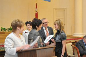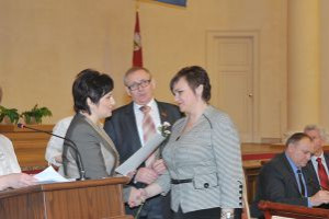 Olga Vasilyeva, Nickolas Kuznetsov and Peter Lopashinov came to congratulate anniversaries. The best workers of civil registry offices (CRO) received Diplomas of Administration of Smolensk region and letters of thanks of Governor.