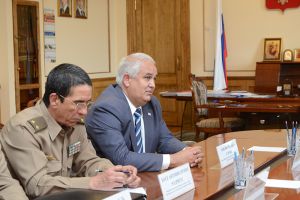 "We are very pleased that you are satisfied with the way the cadets are trained at our academy, we try to create the most favorable conditions for this. We will be glad if you recommend the Cuban businessmen to consider Smolensk region as an investment target”, - said Alexei Ostrovskiy. – “If I receive from you, Mr. Ambassador, an official invitation to visit the Republic of Cuba, I will try to find an opportunity in my schedule to do it on the consent of the Ministry of Foreign Affairs of the Russian Federation. As for the humanitarian relations, I will be very happy if the Embassy initiates inviting the Smolensk students to visit your wonderful Republic. The only issue is the financial support of this project, we are ready to send the young people at our expense, and if the Cuban side is ready to incur expenses of hosting them, we will appreciate it. If you are ready to send some delegations here, to arrange the Days of Culture of Cuba in Smolensk region, I think it would be great and we would find funds to provide free accommodation".