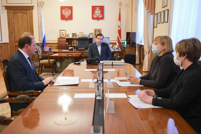 Губернатор Алексей Островский провёл рабочую встречу с ректором Смоленского государственного университета Михаилом Артеменковым, в рамках которой обсуждались вопросы взаимодействия Администрации области с образовательным учреждением в части развития педагогического образования в регионе.
