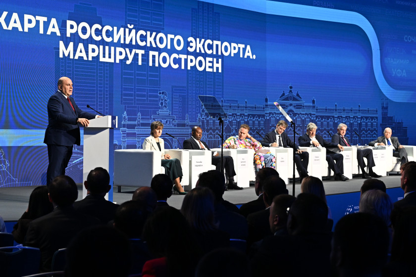 Центральным событием форума стала пленарная сессия "Карта российского экспорта. Маршрут построен", где выступил Председатель Правительства России Михаил Владимирович Мишустин. Премьер-министр отметил, что стратегический ориентир для российской внешней торговли сегодня — это страны Глобального Юга. Также он наметил стратегию формирования единого национального бренда "Сделано в России", подчеркнул важность поддержки субъектов МСП для вовлечения их в экспортную деятельность.