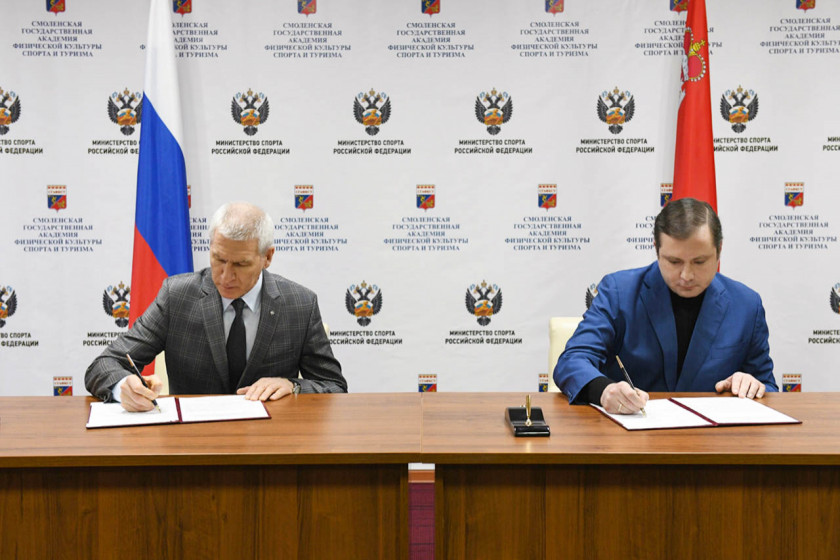 На базе Смоленской государственной академии физической культуры, спорта и туризма состоялась церемония подписания Соглашения о сотрудничестве и взаимодействии в сфере развития футбола между Министерством спорта РФ, Администрацией региона и Российским футбольным союзом. Подписи под документом поставили Министр спорта РФ Олег Матыцин и Губернатор Алексей Островский.