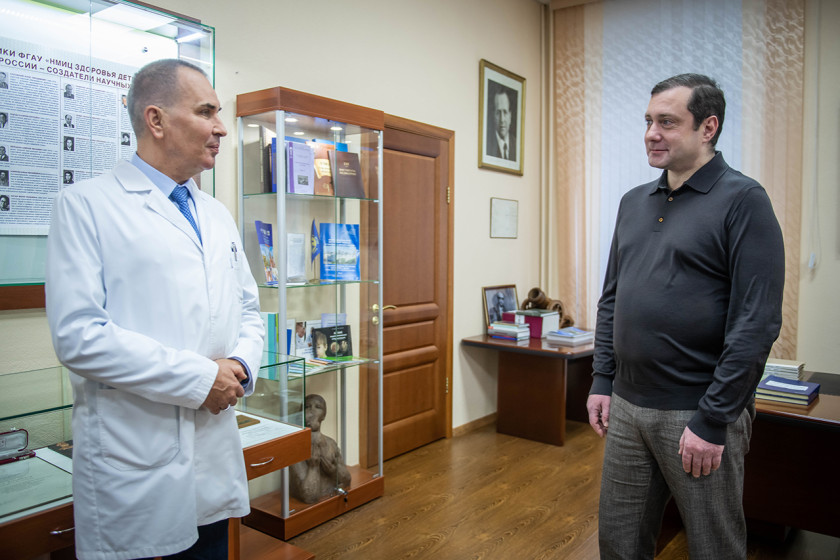 Директор ФГАУ «НМИЦ здоровья детей» Минздрава России Андрей Фисенко провел для Губернатора Алексея Островского экскурсию по медицинскому учреждению, показав ключевые отделения и кабинет памяти Митрофана Яковлевича Студеникина – известнейшего советского и российского педиатра, академика РАМН, Почётного директора Института педиатрии РАМН.