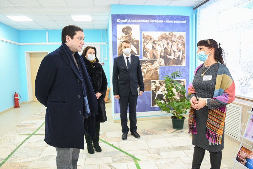 В рамках рабочей поездки в Гагаринский район Губернатор Алексей Островский посетил филиал культурно-досугового центра «Комсомолец» Дом культуры в селе Клушино, реконструированный в рамках национального проекта «Культура».