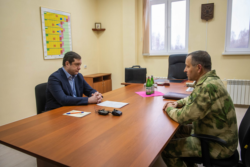 Губернатор Алексей Островский провел рабочую встречу с командующим Центральным округом войск национальной гвардии Российской Федерации Александром Поповым в учебном центре войск национальной гвардии «Жорновка».
