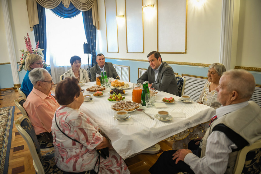 Юбиляры поделились с Губернатором своими секретами долгой и счастливой семейной жизни. Во время беседы супруги Васильевы, Цехановские и Медведевы рассказали об историях своего знакомства, а также о том, как живут их семьи сегодня. У каждой четы своя история любви и верности.