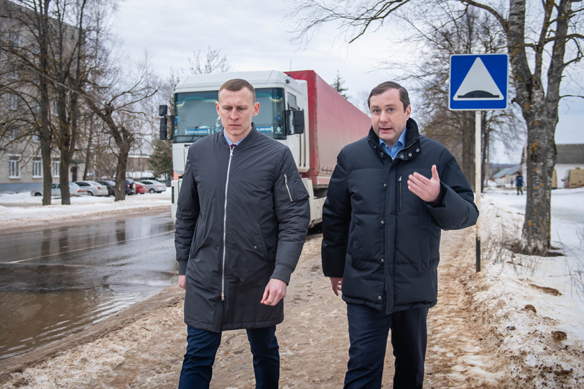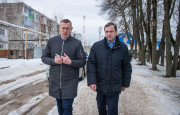 В ходе визита в Кардымово Губернатор Алексей Островский посетил школьный стадион и обсудил с главой района Олегом Смоляковым качество уборки тротуаров, пройдя пешком по центральным улицам районного центра.