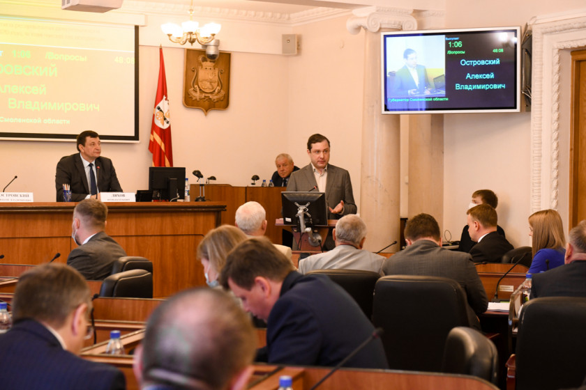 Губернатор Алексей Островский выступил на заседании регионального парламента с отчетом о результатах деятельности Администрации Смоленской области за 2020 год. Депутаты единогласно приняли отчет к сведению.