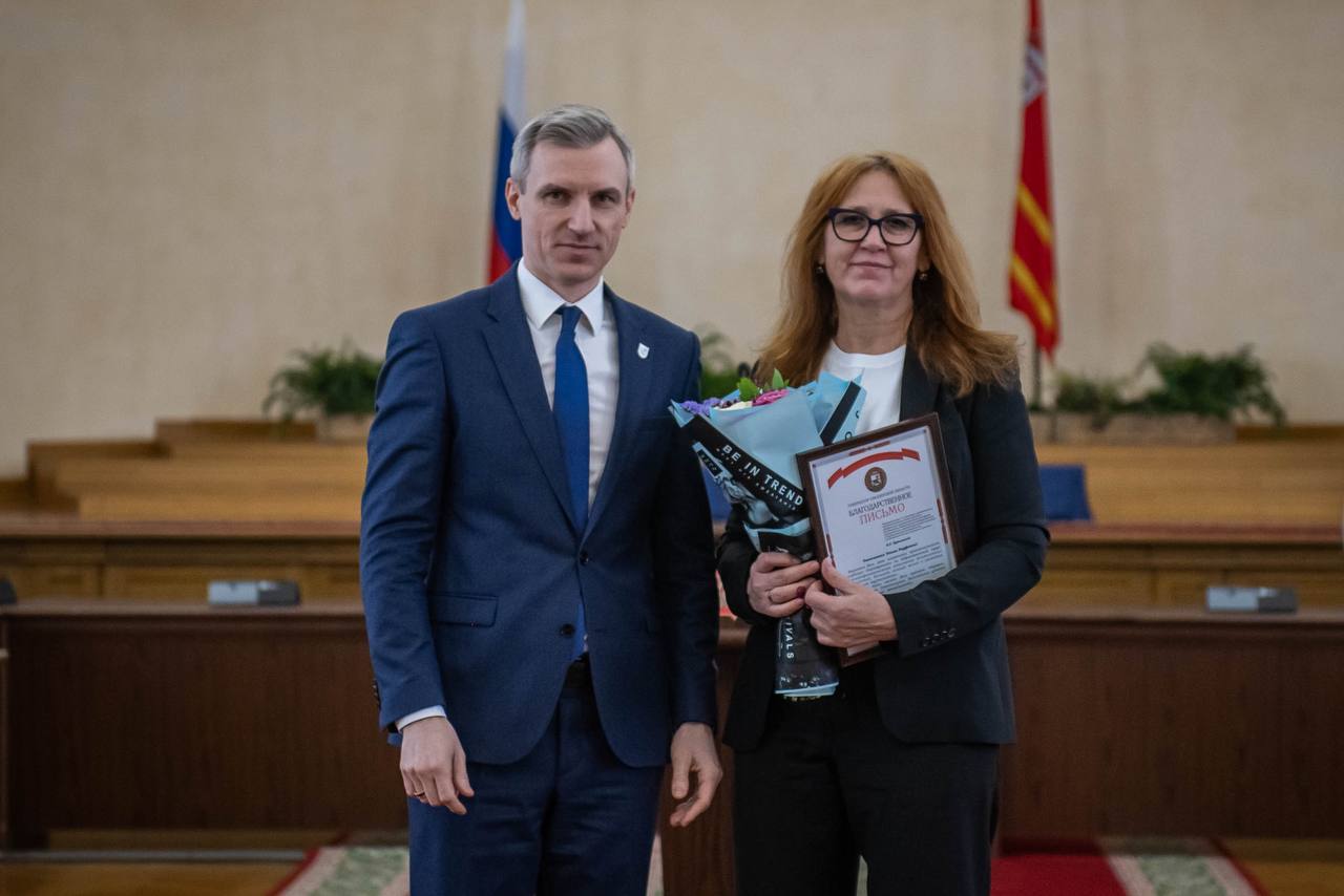 Далее Губернатор Василий Анохин вручил наиболее отличившимся представителям медиасообщества региона и полиграфической отрасли региональные награды – Почетные грамоты Правительства и Благодарственные письма Губернатора – за многолетний добросовестный труд и высокий профессионализм в деле объективного освещения социальной, экономической и политической жизни Смоленщины.