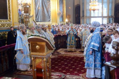 Сотни прихожан и паломников из Украины, Беларуси, стран ближнего и дальнего зарубежья собрались в главном храме Смоленщины, с любовью и надеждой устремив взоры к образу Пресвятой Богородицы, именуемой «Одигитрия», что значит «Путеводительница».