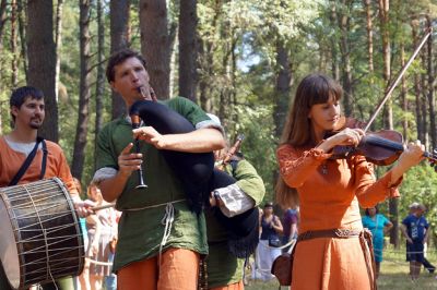 Работала и ярмарка изделий, стилизованных под эпоху IX-Xвеков. Участники фестиваля предложили гостям неплохой набор сувениров ручной работы — украшений, одежды, всевозможных ножей и поделок из натуральных материалов.