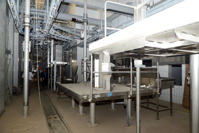 В настоящее время построены основные производственные корпуса, административное здание, ведутся внутренние отделочные работы, монтаж оборудования. Уже построена первая очередь проекта – цех по убою свиней до 240 голов в час и производству полуфабрикатов до 200 тонн в сутки. Запуск первой очереди планируется на октябрь этого года.