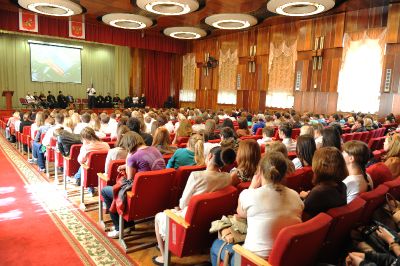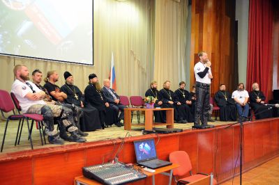 Следующим пунктом программы участников мотопробега и многодетных священнослужителей Смоленской епархии стала встреча со студентами Смоленской государственной медицинской академии.