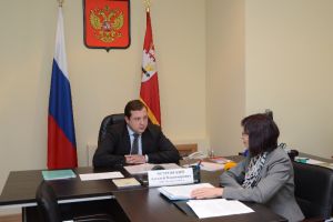 Следующая заявительница, руководитель Вяземского отделения Всероссийского общества охраны памятников истории Эвелина Валерьевна Богомолова, обратилась к Алексею Островскому с несколькими просьбами от лица общественности города. Она попросила губернаторского содействия в принятии проекта охранных зон культурного слоя города, в продвижении вопроса реставрации объектов культурного наследия, входящих в число памятников архитектуры Смоленской области, расположенных в Вязьме.
