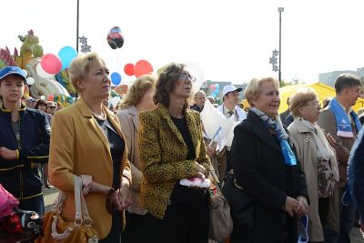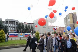 По традиции торжества в День города начались с праздничного шествия коллективов предприятий и организаций Десногорска. Центральную улицу заполнила колонна, украшенная разноцветными шарами, цветами, флагами и транспарантами.